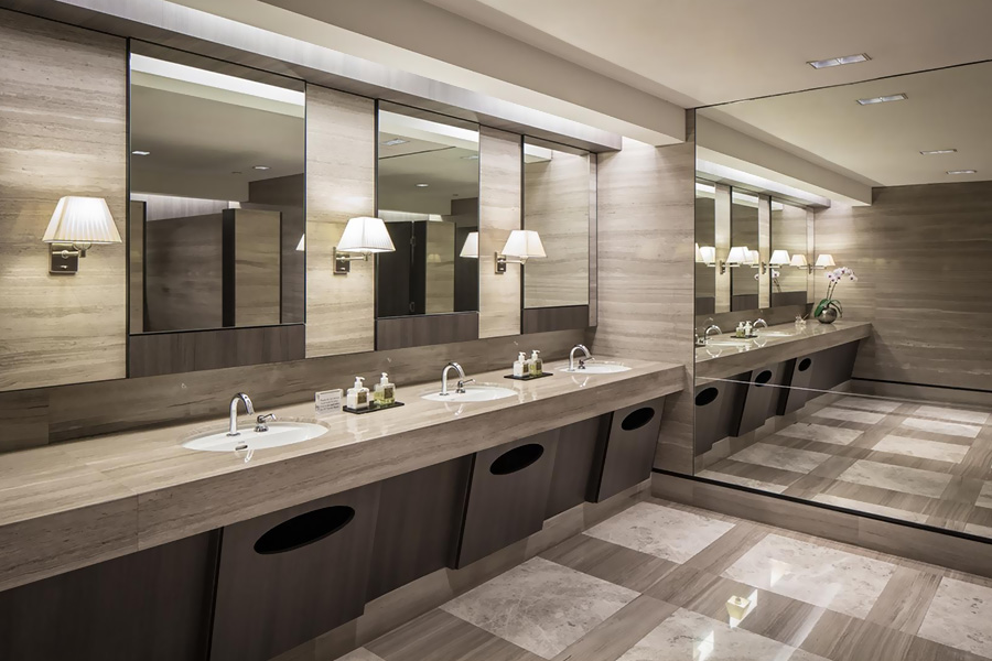 Обустроить санузел для ресторана восточной кухни с учетом фирменного стиля.